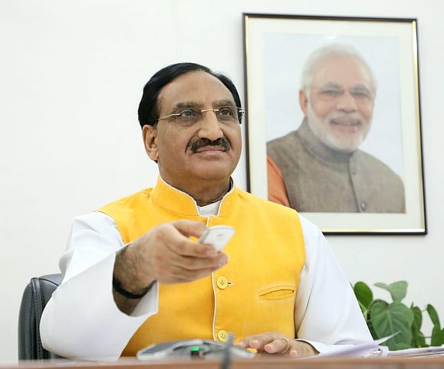 शिक्षा मंत्री रमेश पोखरियाल संबोधन देते हुए। (Twitter)