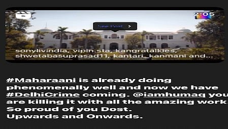 राजकुमार राव ने अपने इंस्टाग्राम (Instagram) पर हुमा कुरैशी (Huma Qureshi) की सीरीज महारानी-4 (Maharani) का ट्रेलर शेयर किया है। उन्होंने ट्रेलर की तारीफ कर लिखा, "महारानी के सभी सीजन पहले से हटकर और जबरदस्त तरीके से परफॉर्म कर रहे हैं और अब दिल्ली क्राइम-3 आ रही है। हुमा, तुमने अपने शानदार काम से सबको पीछे छोड़ दिया है। मुझे तुम पर गर्व है, मेरी दोस्त, ऐसे ही आगे बढ़ती जाओ।"