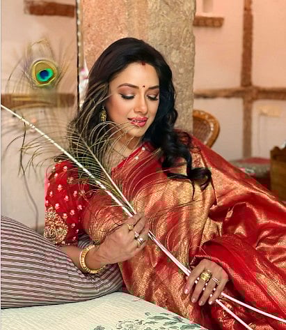 पोस्ट की गई तस्वीरों में रुपाली (Rupali Ganguly) एक नई-दुल्हन की तरह लग रही हैं, उन्होंने लाल रंग की साड़ी पहन रखी है, जिसमें गोल्डन वर्क है। वहीं, उन्होंने मैचिंग ब्लाउज पेयर किया, जिसमें सफेद मोती गले हैं। हाथों में गोल्डन कंगन के साथ उंगलियों में भी सोने की अंगूठी पहन रखी है। बालों को रुपाली ने खुला छोड़ रखा है। कानों में गोल्डन ईयररिंग्स ने उनके चेहरे को और निखार दिया है, जबकि माथे पर बिंदी और मांग में सिंदूर ने उन्हें परंपरागत लुक दिया है।