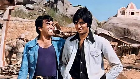 'शोले' (Sholay) को 1975 में रिलीज किया गया था। इसकी कहानी दो अपराधियों, जय और वीरू, के इर्द-गिर्द घूमती है, जिन्हें एक रिटायर्ड पुलिस अफसर, ठाकुर बलदेव सिंह, एक खतरनाक डाकू, गब्बर सिंह, को पकड़ने के लिए बुलाता है। फिल्म में धर्मेंद्र और अमिताभ बच्चन ने वीरू और जय की भूमिकाएं निभाईं, जबकि हेमा मालिनी और जया भादुरी ने बंसती और राधा का किरदार निभाया। फिल्म की शूटिंग कर्नाटक के रामनगर की चट्टानी जगहों पर की गई थी और इसे बनने में करीब ढाई साल लगे थे।