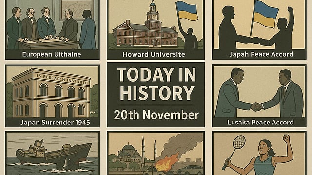 20 नवंबर को विश्व में राजनीति, युद्ध, शांति समझौते, शिक्षा और विज्ञान से जुड़े कई महत्वपूर्ण निर्णय हुए जिन्होंने वैश्विक परिस्थितियों को दिशा दी। ये घटनाएँ अंतरराष्ट्रीय संबंधों, आधुनिक प्रशासन और सामाजिक बदलावों के निर्माण में निर्णायक साबित हुईं।