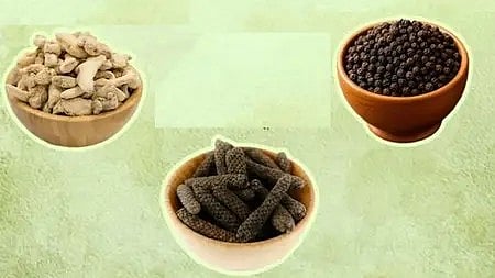 सोंठ (सूखी अदरक) आवाज को साफ करती है, गले की खराश दूर करती है और शरीर में सूजन को कम करने में बेहद कारगर है। सर्दी-खांसी में तुरंत राहत देती है। वहीं काली मिर्च शरीर की रोग प्रतिरोधक क्षमता को मजबूत बनाती है। यह फेफड़ों को साफ करती है और विषाक्त पदार्थों को बाहर निकालने में मदद करती है। पिप्पली मेटाबॉलिज्म (Metabolism) को तेज करती है, वजन नियंत्रण में सहायक है और श्वसन तंत्र को मजबूत बनाती और अस्थमा, पुरानी खांसी में भी लाभ मिलता है।