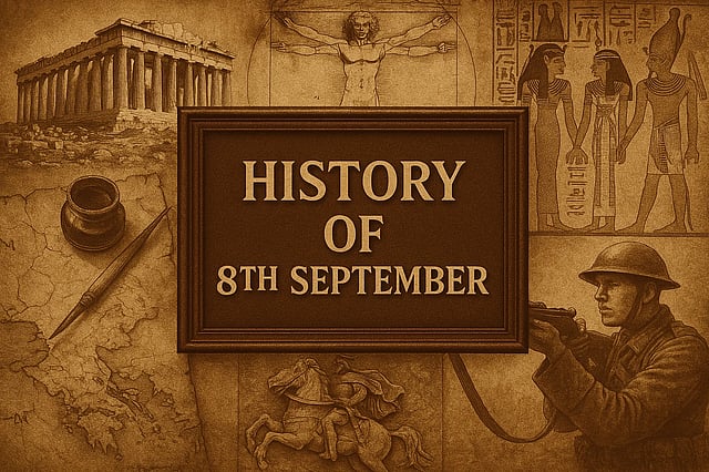 इतिहास के पन्नों में 8 सितम्बर का दिन कई मायनों में खास माना जाता है। इस दिन भारत और विश्व में ऐसी घटनाएँ हुईं जिन्होंने समाज, राजनीति, शिक्षा और मानवता पर गहरा प्रभाव डाला। भारत में गोवा मुक्ति आंदोलन, शिक्षा को बढ़ावा देने वाले अभियान और अंतरराष्ट्रीय सहयोग की शुरुआत जैसे कदम हुए, वहीं विश्व स्तर पर युद्ध, प्राकृतिक आपदाएँ और साक्षरता को समर्पित दिवस का जन्म हुआ। 8 सितम्बर न केवल ऐतिहासिक महत्व रखता है बल्कि यह हमें अतीत से सीख लेकर भविष्य की दिशा तय करने की प्रेरणा भी देता है।आइए जानते हैं इस दिन की कुछ महत्वपूर्ण ऐतिहासिक घटनाएँ। आइए जानते हैं 8 सितंबर (History Of 8th September) के दिन से जुड़ी कुछ महत्वपूर्ण घटनाओं, उपलब्धियों और व्यक्तित्वों के बारे में।