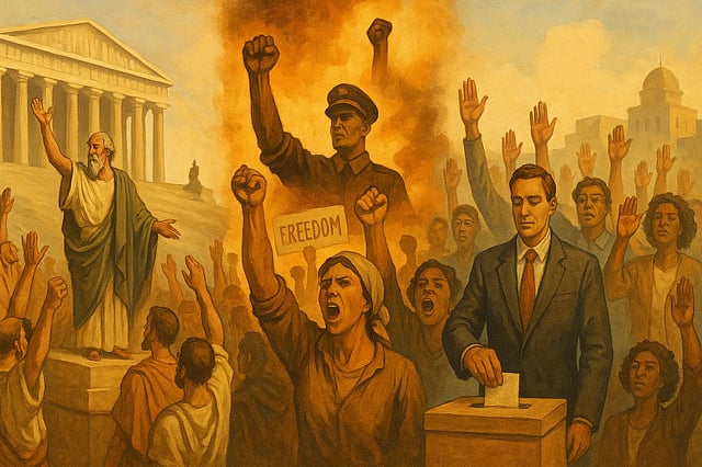अमेरिकी क्रांति ने कहा कि शासन जनता की अनुमति से ही चल सकता है। वहीं फ्रांसीसी क्रांति ने “स्वतंत्रता, समानता और बंधुत्व” (Freedom, Equality) का नारा दिया। यह विचार इतनी तेजी से फैला कि दूसरे देशों ने भी राजाओं और तानाशाहों के खिलाफ आवाज़ उठानी शुरू कर दी। इन क्रांतियों ने दुनिया को सिखाया कि असली ताकत बंदूक या ताज में नहीं बल्कि लोगों की आवाज़ में है। यही से लोकतंत्र का विकास तेज़ी से आगे बढ़ा।