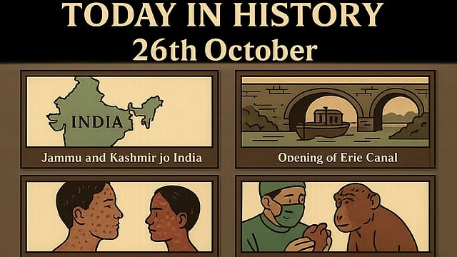 हर दिन इतिहास के पन्नों में कुछ खास घटनाओं का जिक्र मिल जाता है जो की इतिहास के परिप्रेक्ष्य से काफी महत्वपूर्ण होते हैं। 26 अक्टूबर के दिन इतिहास के पन्नों में राजनीति, विज्ञान, स्वास्थ्य और समाज की दृष्टिकोण से कई महत्वपूर्ण घटनाएं घटित हुई हैं और इन घटनाओं से यह समझने में मदद मिलती है कि एक निर्णय या घटना कैसे समय के साथ-साथ बड़े बदलाव लेकर आते हैं। आइए जानते हैं 26 अक्टूबर (History Of 26th October) के दिन से जुड़ी कुछ महत्वपूर्ण घटनाओं, उपलब्धियों और व्यक्तित्वों के बारे में।