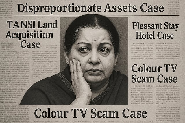 सबसे प्रमुख मामला है Disproportionate Assets Case (1991-96)। इस केस में उन पर, उनकी साथी वी.के. ससिकला, उनके भतीजे व अन्य लोगों ने मिलकर जयललिता की आय के मुकाबले बहुत अधिक पूंजी (Assets) जमा करने का आरोप था। इसमें बैंक खाते, बंगले, जमीनें, सोना-चांदी, लग्ज़री वस्तुएँ आदि शामिल थे।