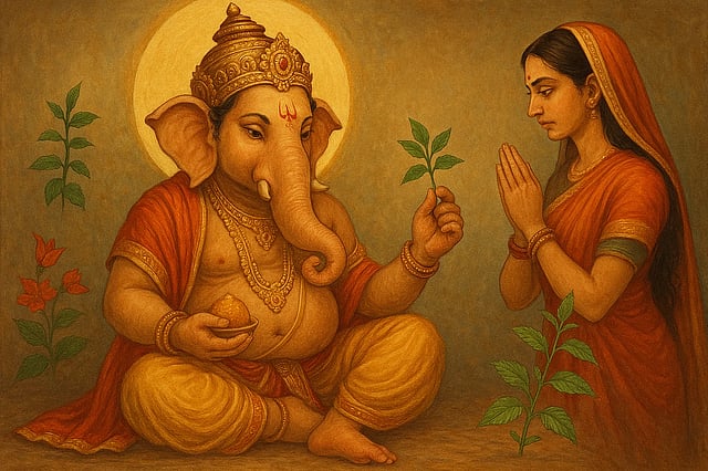 हर साल गणेश चतुर्थी (Ganesh Chaturthi) पर लाखों भक्त गणेश जी (Ganesha) को मोदक, दूर्वा घास और लाल फूल चढ़ाते हैं। लेकिन एक चीज़ कभी नहीं चढ़ाई जाती, तुलसी (Tulsi) पत्ता। यही सवाल सबके मन में आता है: आख़िर क्यों तुलसी पत्ता गणेश जी को नहीं चढ़ाते? इसका कारण है एक पुरानी कथा, जिसमें तुलसी और गणेश जी का संबंध जुड़ा है।