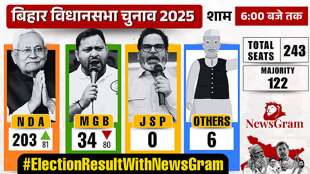 शुरुआती रुझानों में NDA गठबंधन को 190 से ज्यादा सीटें मिलती दिख रही हैं, जिससे यह साफ है कि उन्हें भारी बहुमत मिल सकता है। दूसरी ओर, महागठबंधन 50 से कम सीटों पर सिमटता नजर आ रहा है और काफी पीछे है।
