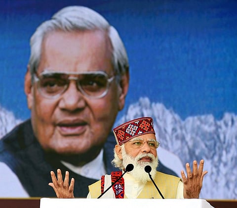 प्रधानमंत्री मोदी के साथ बिहार के मुख्यमंत्री नितीश कुमार एवं उप-मुख्यमंत्री सुशिल मोदी। (फाइल फोटो, PIB)
