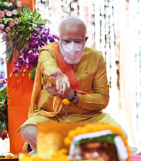 रामजन्मभूमि पर मंदिर निर्माण के लिए भूमिपूजन करने आए प्रधानमंत्री नरेंद्र मोदी पूरी तरह राम के रंग में रंगे नजर आए। कार्यक्रम में पधारे संतों में भी काफी जोश देखने को मिला। भूमिपूजन में आये संतों ने एक स्वर में कहा कि अब राममंदिर का निर्माण शुरू हो गया है। इसके बाद काशी और मथुरा की बारी है।