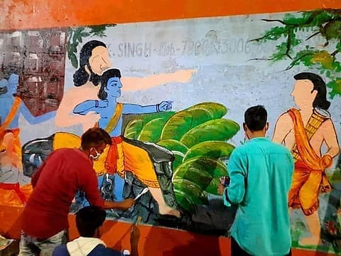 अयोध्या के दीवारों पर बनाई गयी श्री राम की कलाकृतियाँ : तस्वीर 2 (Image: Twitter)