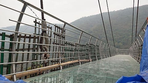 राजगीर के अति प्राचीन वैभार गिरी पर्वत के तलहटी में बनाए गए इस पुल में 15 एमएम के तीन लेयर के शीशे लगाए गए है। इसमें लगे शीशे की कुल मोटाई 45 एमएम है, जो पूरी तरह से पारदर्शी है, जिसके कारण इसपर चलना काफी रोमांचकारी भी होगा।