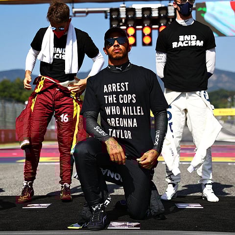 हेमिल्टन ने यह टीशर्ट रेस से पहले हुए नस्लवाद विरोधी प्रदर्शन में भी पहनी थी और पोडियम पर भी।