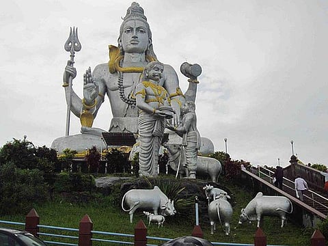 मुरुदेश्वर मंदिर पारंपरिक और आधुनिक वास्तुकला का एक अद्भुत मिश्रण है। यह दक्षिण भारत का एक प्रसिद्ध हिन्दू मंदिर है। (Wikimedia Commons)