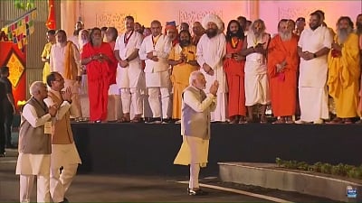 मध्य प्रदेश (Madhya Pradesh) की धार्मिक नगरी उज्जैन (Ujjain) के महाकालेश्वर (Mahakaleshwar) परिसर में बने महाकाल लोक को प्रधानमंत्री नरेंद्र मोदी (Narendra Modi) ने राष्ट्र के लिए समर्पित किया। उन्होंने रिमोट के जरिए रक्षा सूत्र से बनी शिवलिंग (Shivling) के आवरण को हटाया। प्रधानमंत्री मोदी भारतीय वायु सेना के विमान से इंदौर और फिर वहां से हेलीकॉप्टर से उज्जैन पहुंचे, जहां उन्होंने महाकाल के दरबार में पहुंचकर विशेष पूजा अर्चना की। उसके बाद प्रधानमंत्री मोदी ने महाकाल लोक पर पहुंचकर वैदिक मंत्रोच्चारण के बीच रक्षासूत्र से बनी 15 फुट उंची शिवलिंग की प्रतिकृति से रिमोट से आवरण को हटाया। उसके बाद उन्होंने राज्यपाल मंगुभाई पटेल (Mangubhai Patel) व मुख्यमंत्री शिवराज सिंह चौहान (Shivraj Singh Chouhan) के साथ महाकाल लोक का जायजा लिया।